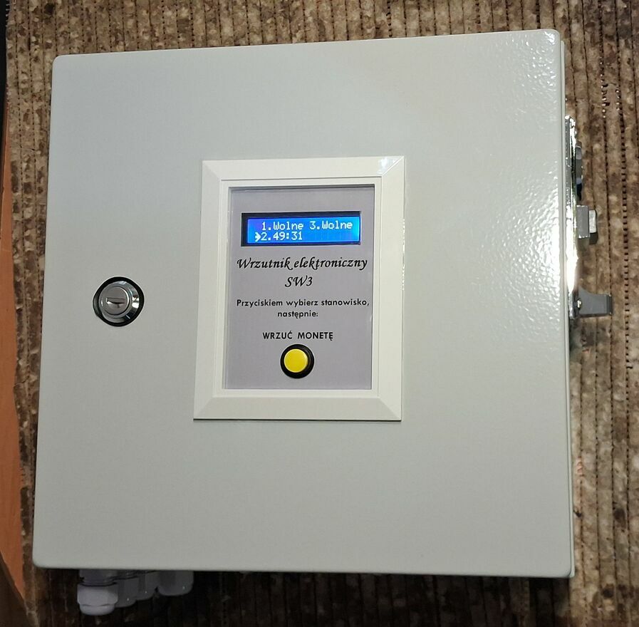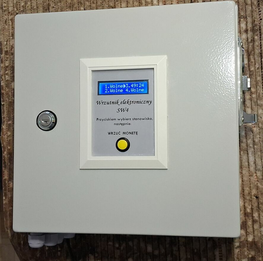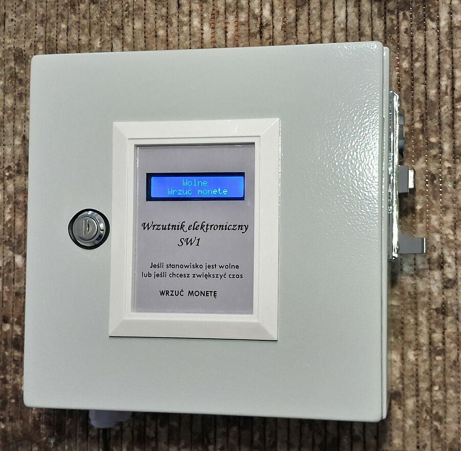 Za pomocą przycisków umieszczonych w środku skrzynki, można resetować dowolny licznik a także zmieniać nastawy czasu po wrzuceniu monety.