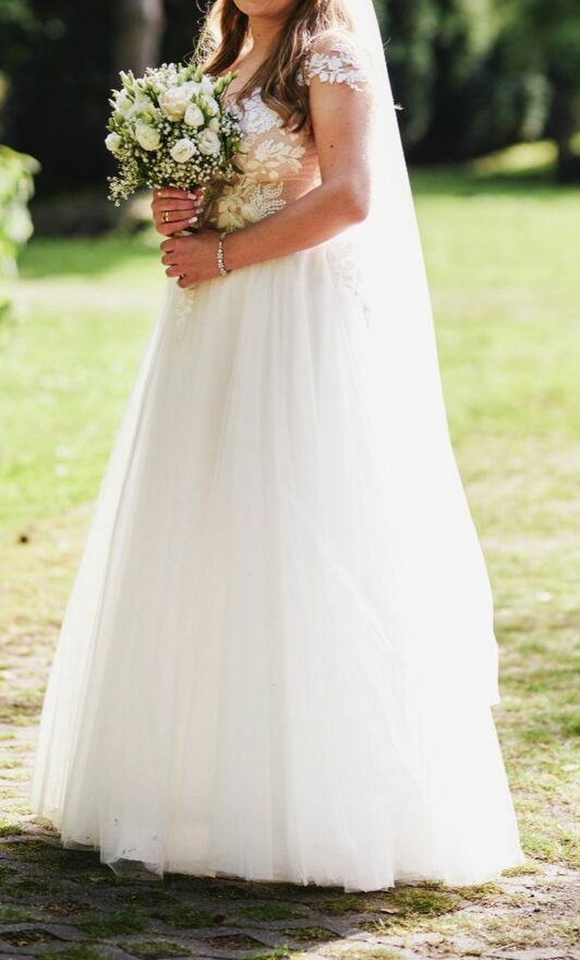Witam, sprzedam suknię ślubną rozmiar M, 175 cm . Sukienka nowa była zakładana tylko na ślub bez wesela. Cena do negocjacji. Osoby zainteresowane zapraszam do kontaktu telefonicznego.Wioleta
